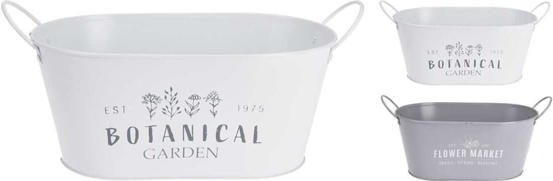 Dekorační květináč ve tvaru oválu doplní každou domácnost, terasu i zahradu. Vysadíte si do něj bylinky nebo okrasné rostlinky dle libosti. Díky kvalitnímu provedení z pozinkovaného plechu ho můžete používat jak ve vnitřních, tak venkovních prostorech. Snadno ho přenesete pomocí dvou postranních rukojetí. Barevné provedení dodáváme náhodně.