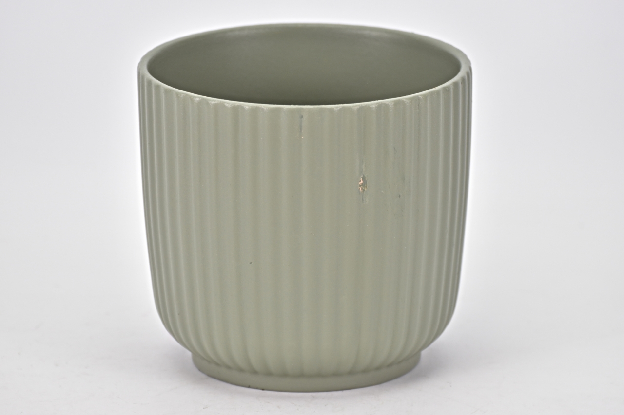 Žebrovaný kameninový květináč. II. jakost z důvodu vady glazury viz foto.Materiál: kameninaBarva: šedo-zelenáRozměry:výška 12,5 cmprůměr 13,5 cmhmotnost 516 g prečítať celé