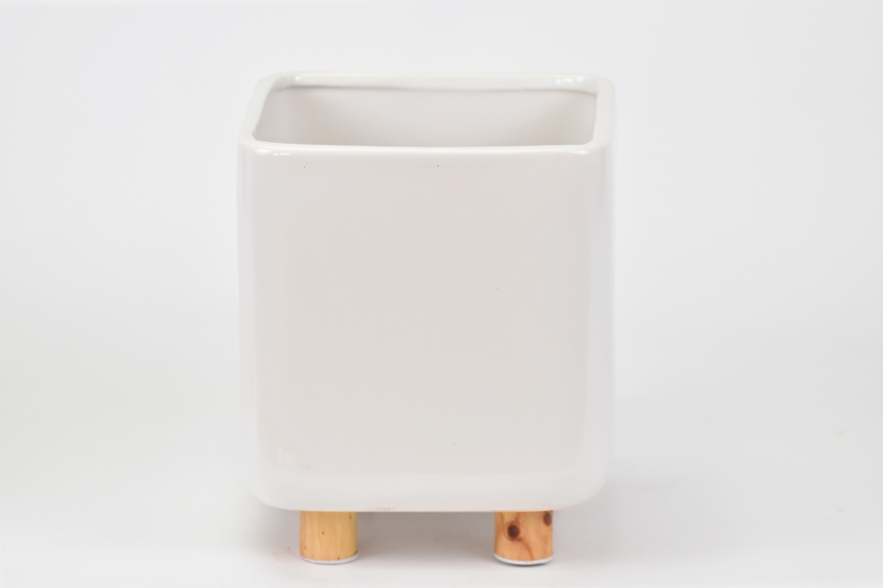 Bílý keramický květináč na nožkách 19x16x16 cm