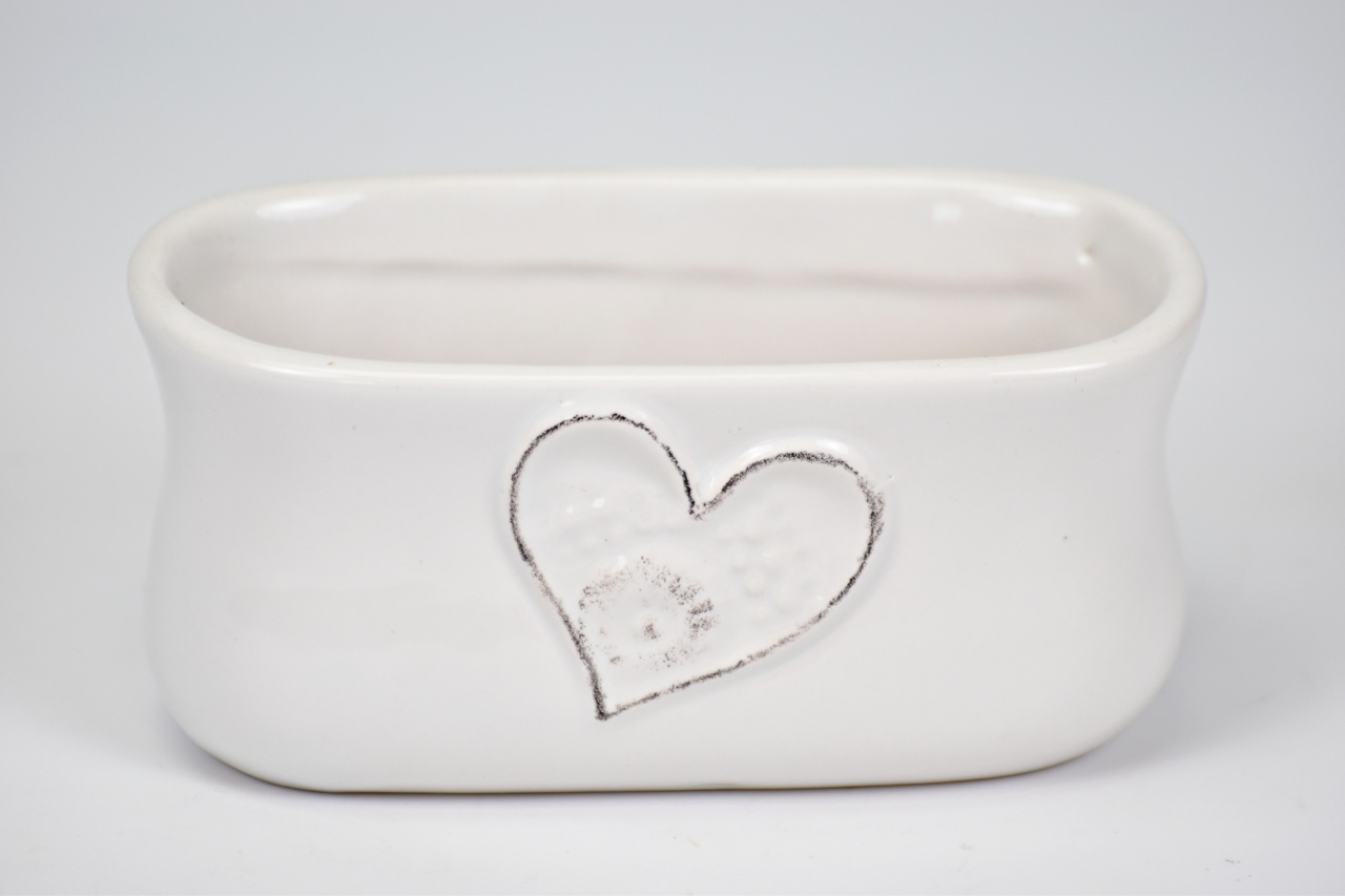 Keramický květináč oválný se srdíčkem 6,5x7,5x14,2 cm
