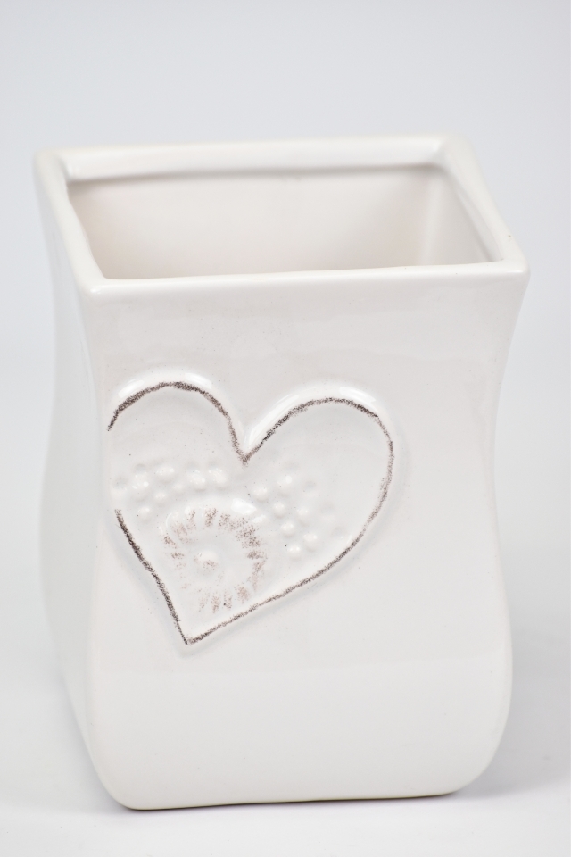 Keramický květináč se srdíčkem 18x13,5x13,5 cm
