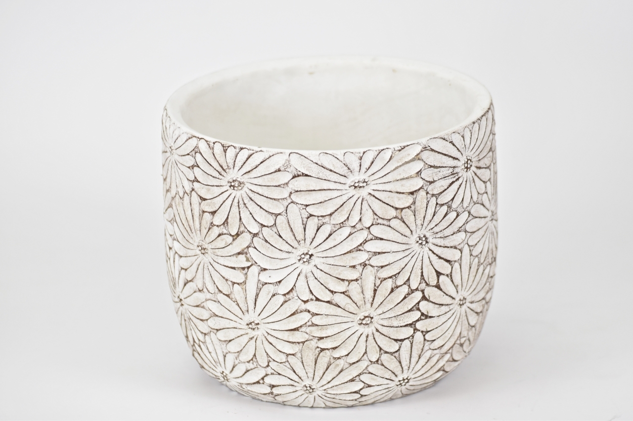 Cementový květináč Flowers bílý 14,8x16,8 cm