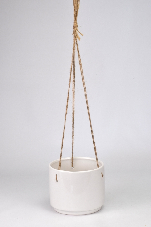 Keramický květináč na zavěšení s lesklou glazurou. II. jakost z důvodu různých vad v glazuře - nedoglazurované tečky, střečená barva, uštípnutá glazura, hrbolky. Každý květináč má jinou vadu. Tyto vady nejsou důvodem k reklamaci.