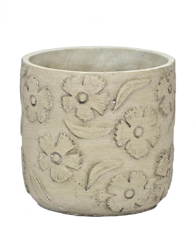 Betonový květináč s reliéfem květin. Dekorace není mrazuvzdorná.Materiál: cementovo-pryskyřičná směsRozměry:výška 12,5 cmprůměr 13 cm prečítať celé