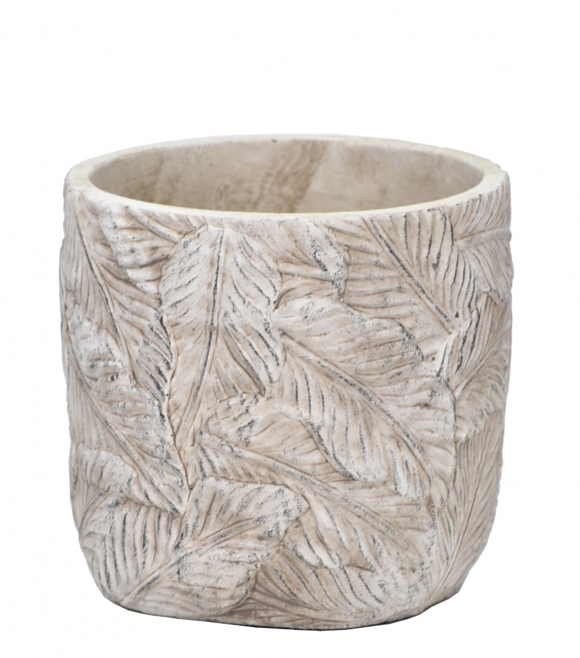 Betonový květináč s reliéfem listů. Dekorace není mrazuvzdorná.Materiál: cementovo-pryskyřičná směsRozměry:výška 12,5 cmprůměr 12,5 cm prečítať celé