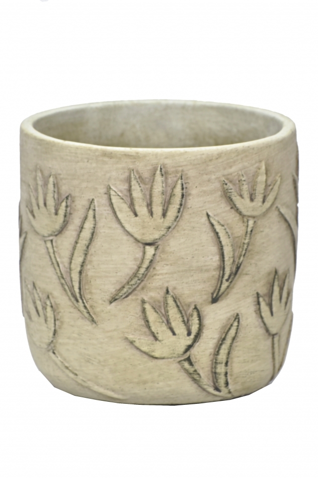 Betonový květináč s reliéfem květin. Dekorace není mrazuvzdorná.Materiál: cementovo-pryskyřičná směsRozměry:výška 14,5 cmprůměr 15 cm prečítať celé