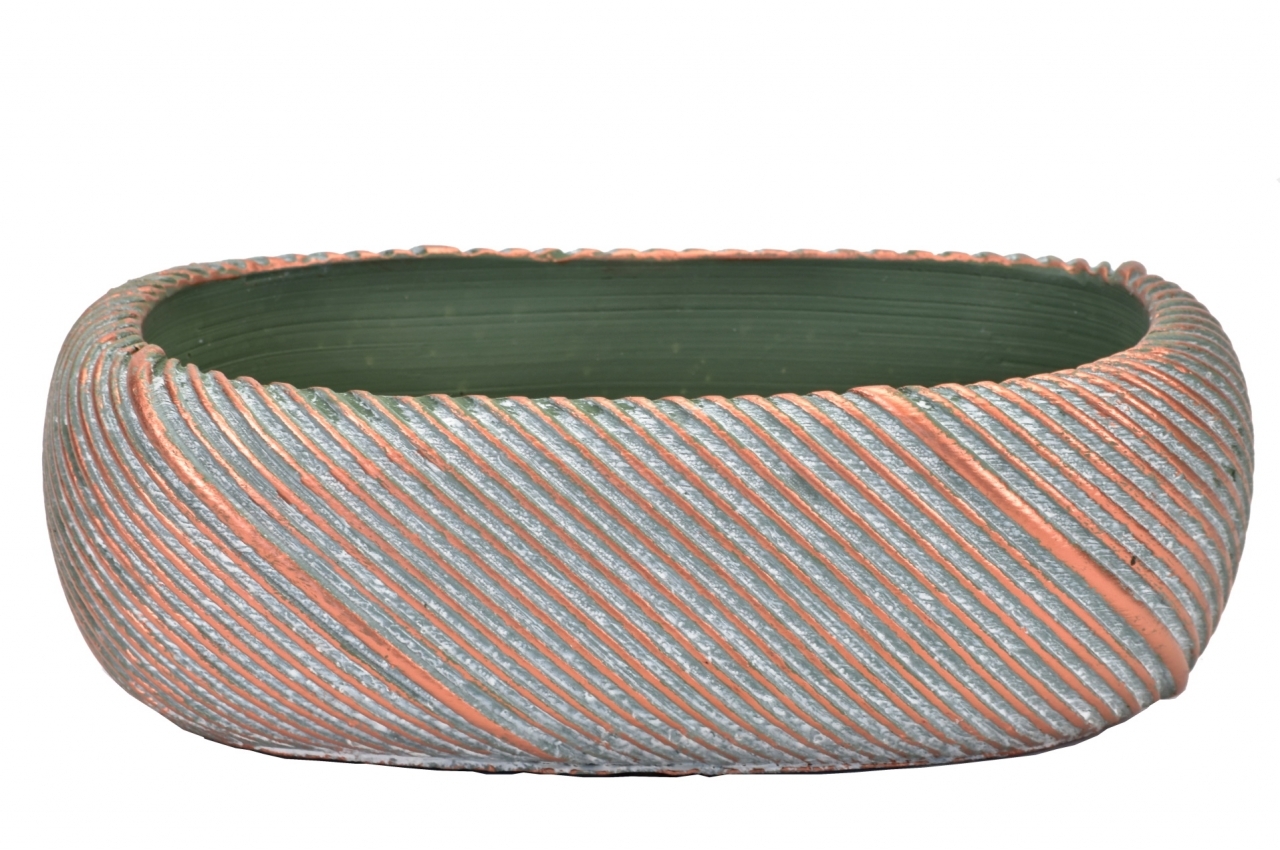 Betonový květináč v zelené barvě zdobený bronzovými proužky. Dekorace není mrazuvzdorná a není 100% vodonepropustná.Materiál: cementovo-pryskyřičná směsRozměry:výška 9 cmšířka 15 cmdélka 25 cm prečítať celé
