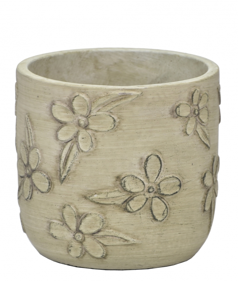 Betonový květináč s reliéfem květin. Dekorace není mrazuvzdorná.Materiál: cementovo-pryskyřičná směsRozměry:výška 12 cmprůměr 13 cm prečítať celé
