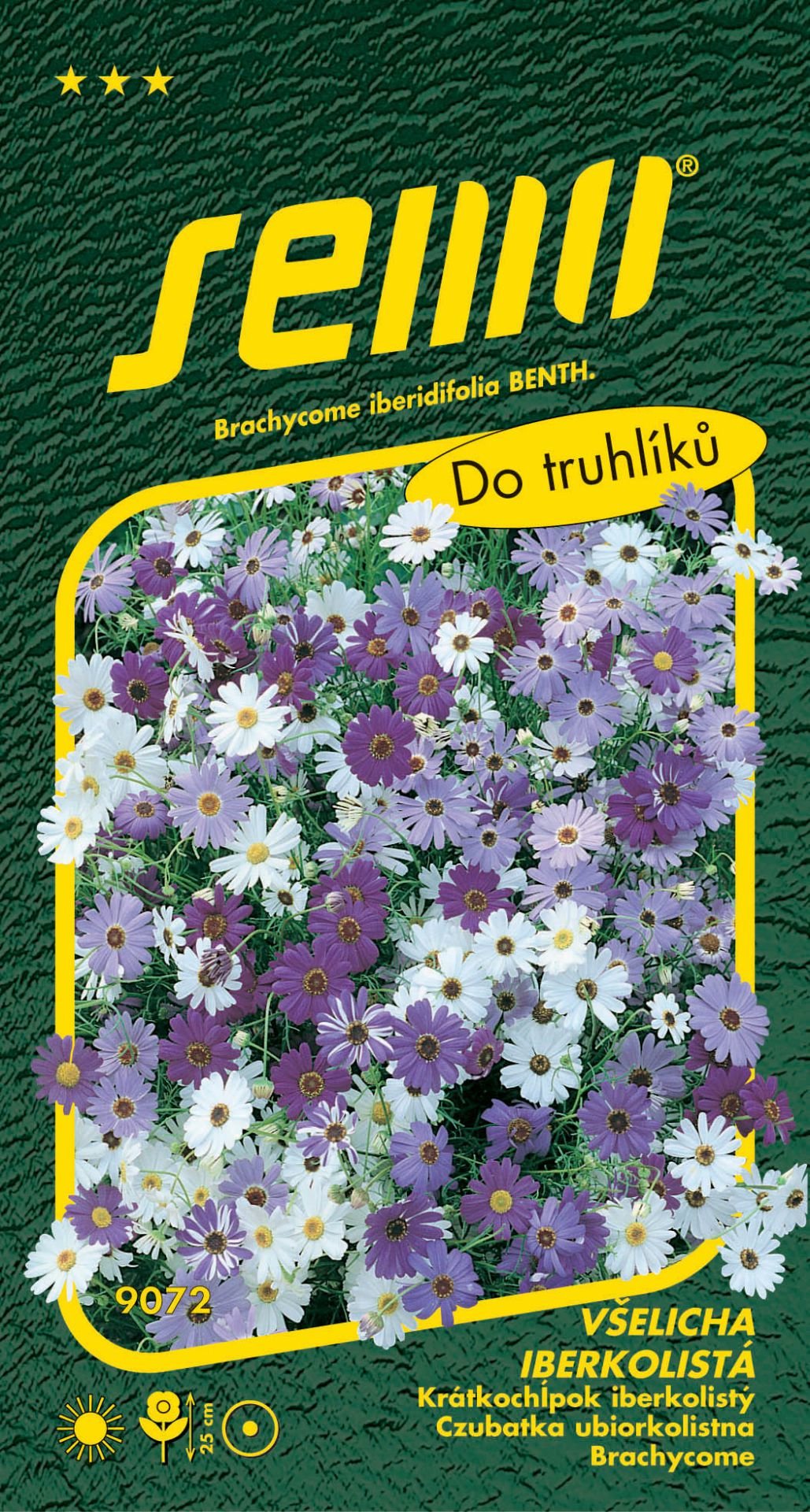 Brachyscome iberidifolia BENTH. / Krátkochl´pok iberkolistýPopis:Rychle rostoucí, kompaktní, bohatě větvená letnička s drobnými, hluboce členěnými listy, původem z Austrálie. Po celé léto vytrvale kvete, úbory modrých, růžových a bílých květů, výška 25cm. Je vhodná do truhlíků, skalek a na...