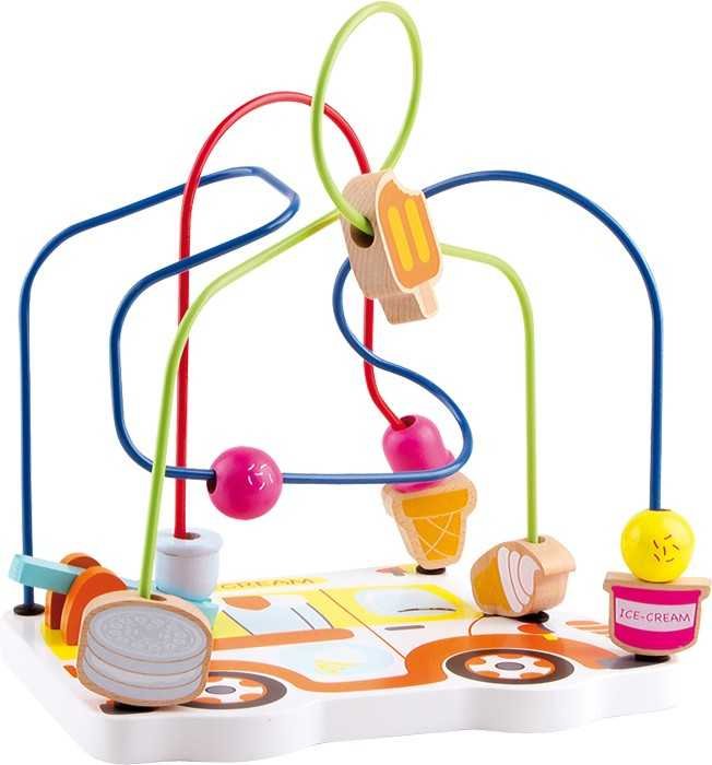 Pestrobarevná motorická hra ze dřeva garantuje hodně zábavy a podnětů: Na zrmzlinářském voze se posouvají různé kopečky zmrzliny, vafle a nádoby se zmrzlinou po třech komplikovaně ohnutých smyčkách. Porcovač zrmzliny slouží jako houpačka.Německá firma Legler zaměřená na výrobu kvalitních...