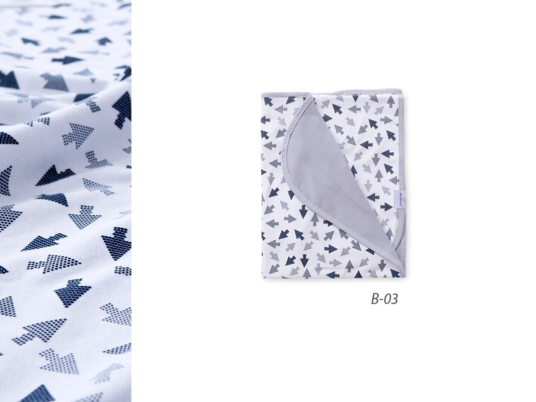 Niezwykle lekki i delikatny kocyk, wykonany z bambusa i jersey`u. Idealnego na letnie spacery. Jedna strona kocyka wykonana z materiału w kolorowe wzory, druga strona jednobarwna.