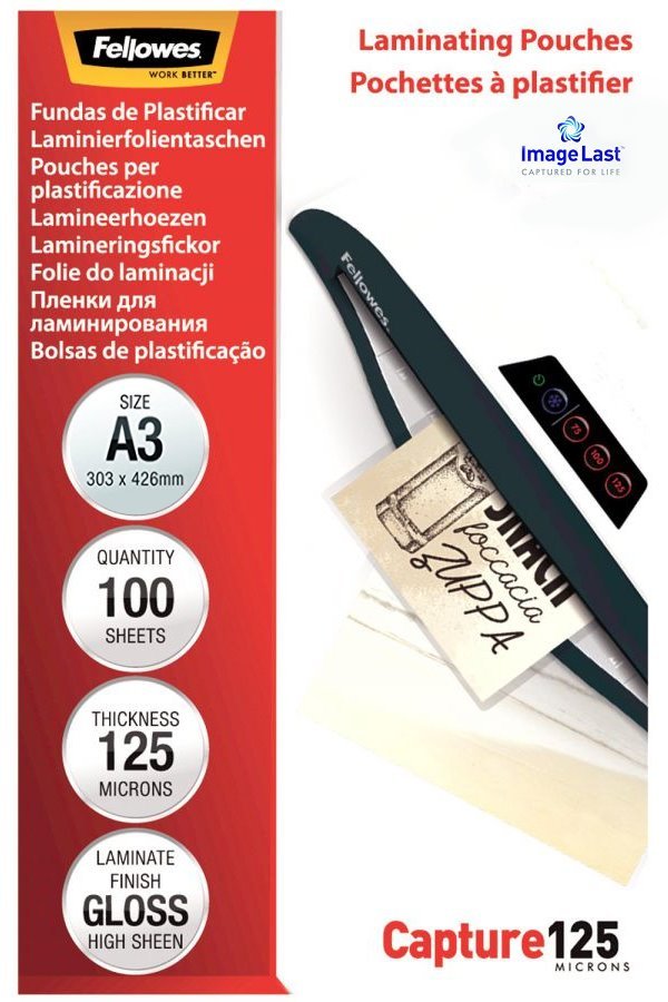 FELLOWES laminovací fólie/ formát A3/ 125 mic ImageLast/ velikost 303x426 mm/ lesklé/ 100 pack