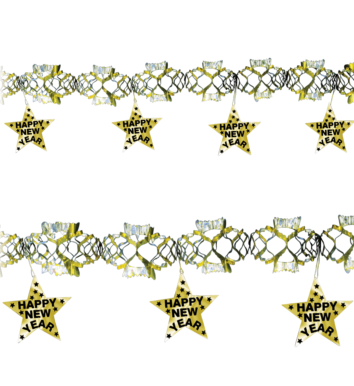 Silvestrovská girlanda holografická s nápisem HAPPY NEW YEAR Barva: zlatá Délka: 3m Materiál: 90% PVC, 10% papír prečítať celé