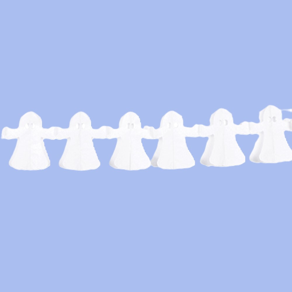 Nehořlavá papírová girlanda duch. oblíbená dekorace pro Halloween. Délka: 4 m Materiál: 92% papír, 8% bavlna prečítať celé
