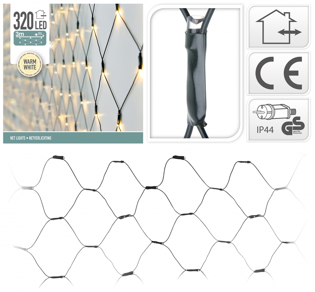 Vánoční osvětlení ve formě sítě se 160 LED světýlky + 300 cm přívodovým kabelem s IP44 adaptérem. Girlanda je vhodná pro vnitřní i venkovní použití.Barva světla: bílá tepláRozměr:výška sítě 150 cmšířka sítě 300 cmdélka kabelu od adaptéru k síti: 300 cm prečítať celé