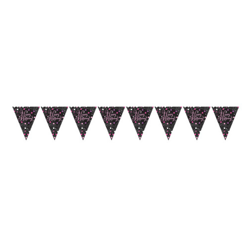 Vlajka šťastné narozeniny růžová 3,96 m rozměr: šířka vlajky nahoře je 16 cm, délka boční strany je 22 cm. Vlajky jsou spojené  šňůrkou. prečítať celé