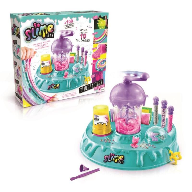 Vyrobte si svůj vlastní sliz. Nasypejte do kelímku prášek, přidejte glitry a figurku. Nalijte vodu až po rysku a směs pořádně promíchejte. Pak kelímek na stanici protřepejte. Otevřete ho a počkejte pět minut. Sliz je hotový. Zkuste kombinovat barvy a užijte si tu pravou zábavu se slizem. Obsah: továrna na sliz, 10 x sáček s práškem na výrobu slizu, konfety, třpytky, 4 x figurka, špachtličku, nálevku, 3 x kelímek, štítky. Pro děti od 6let.