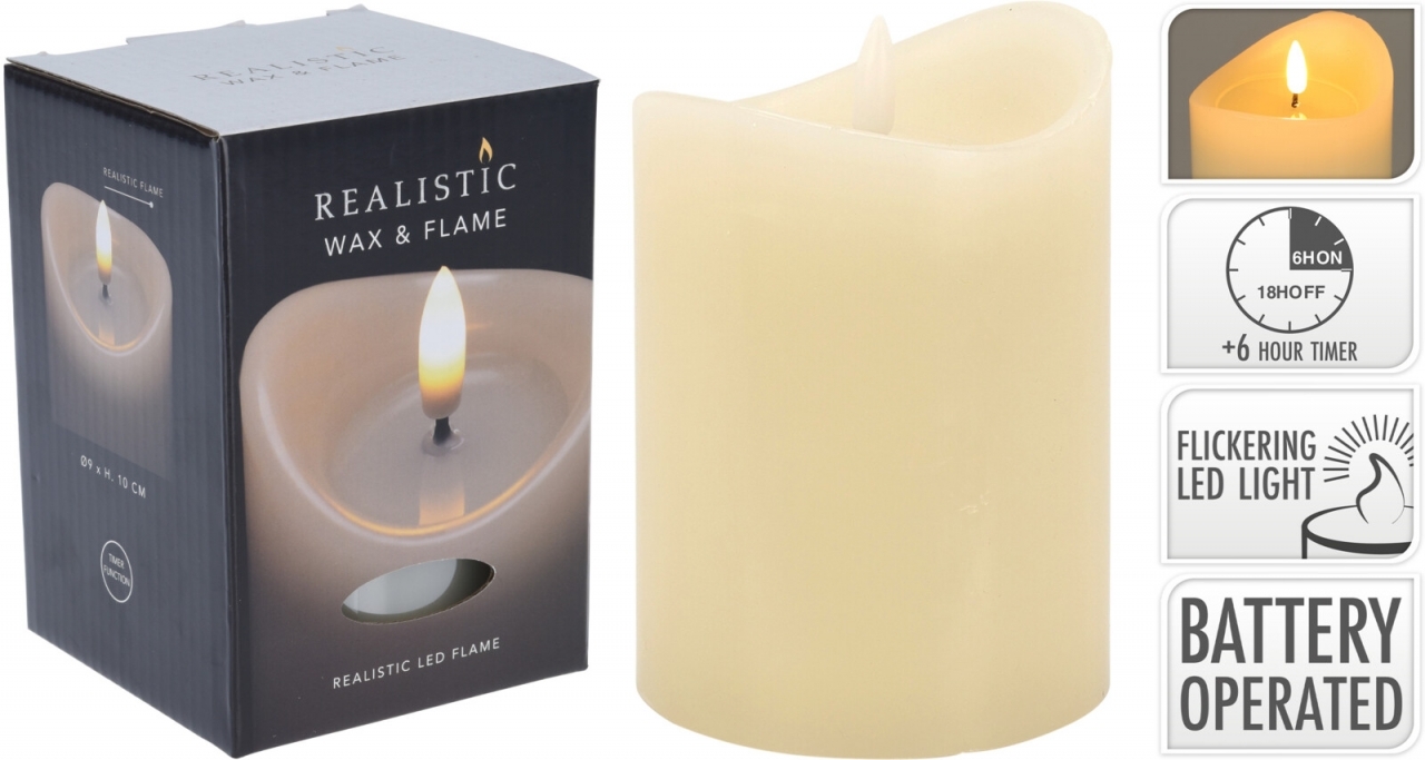 LED svíčka je věrnou imitací pravé svíčky. Umí navodit příjemnou atmosféru na dušičky, Vánoce, ale i v létě na terase. Součástí svíčky je časovač (6 hodin svítí, 8 hodin nesvítí). S blikajícím plamínkem.