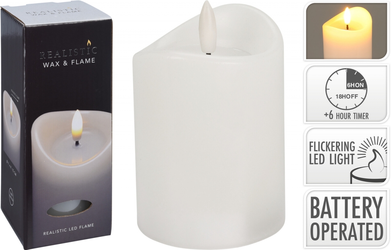 LED svíčka je věrnou imitací pravé svíčky. Umí navodit příjemnou atmosféru na dušičky, Vánoce, ale i v létě na terase. Součástí svíčky je časovač (6 hodin svítí, 8 hodin nesvítí). S blikajícím plamínkem.
