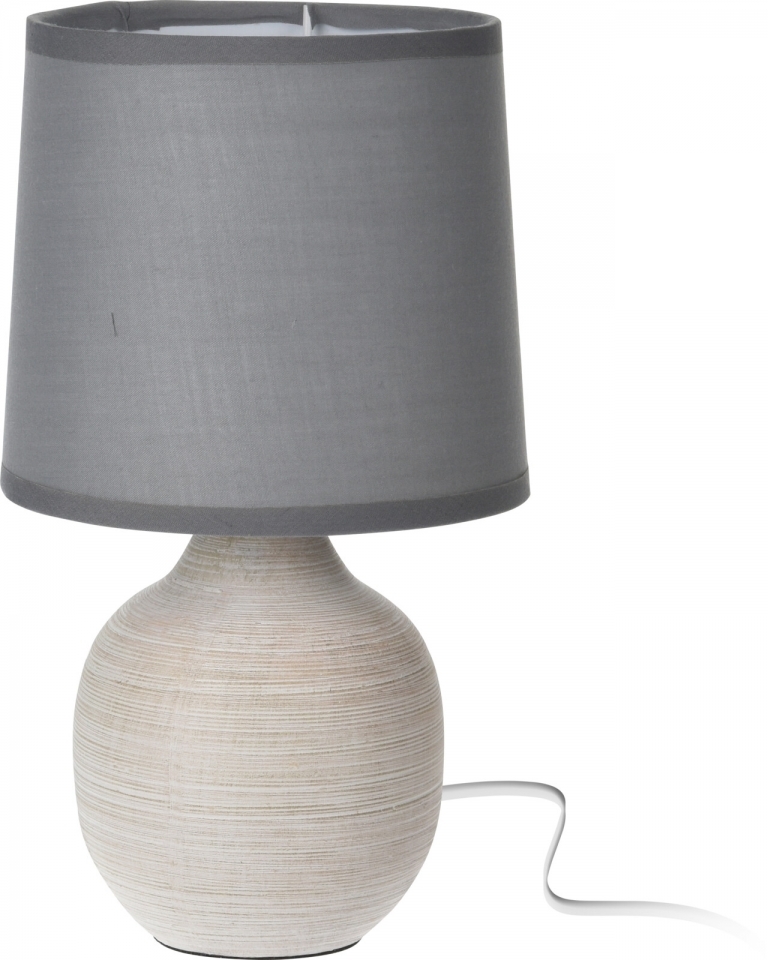 Stolní lampa s šedým stínítkem. Přívodový kabel 1,5m. Patice E14. Žárovka 1x 25W (není součástí výrobku).Materiál: keramika, textilRozměry:výška 25 cmprůměr 15 cmhmotnost 500 g prečítať celé