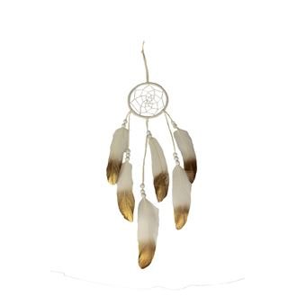 Lapač snů má průměr 10 cm, tloušťku 0,5 cm, celková délka 52 cm.