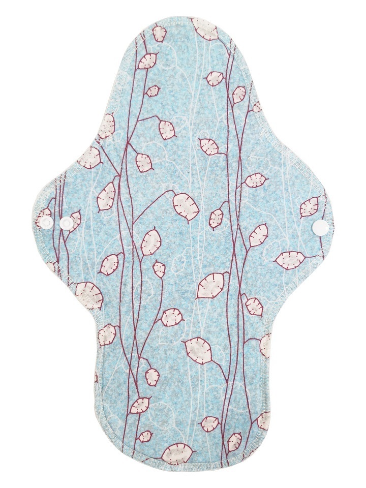 BIO XL vložka (Bavlněné froté s PUL) - Stříbrné lístečky na modré (biobavlněný úplet s GOTS)