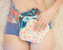 BIO Intimní vložka s GOTS (Biobavlněný úplet) - Malované pivoňky, černé obšití