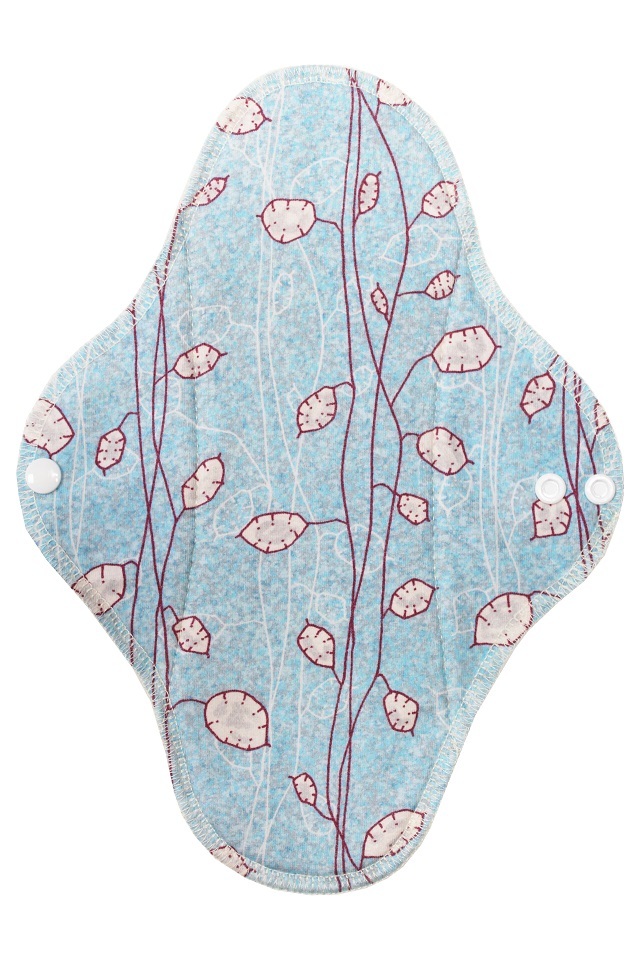 BIO Noční vložka (Bavlněné froté s PUL) - Stříbrné lístečky na modré (biobavlněný úplet s GOTS)