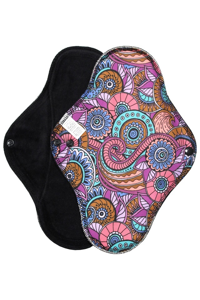 Noční vložka (PUL) - Květinové mandaly fialové, černý velur (kojenecký plyš)