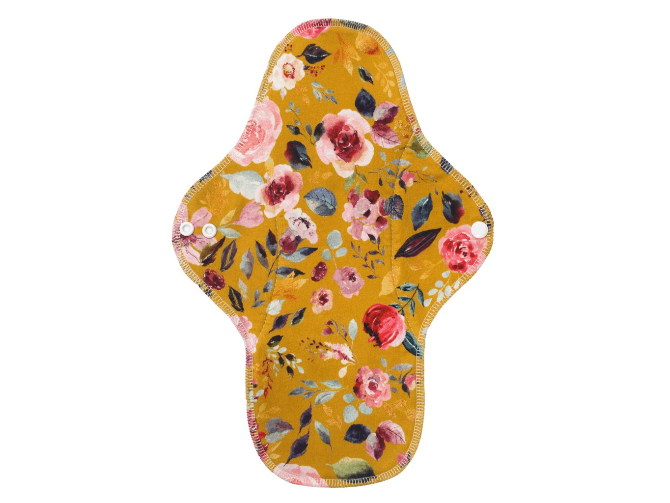 BIO XL vložka (Bavlněné froté s PUL) - Malované pivoňky v hořčicové (biobavlněný úplet s GOTS)
