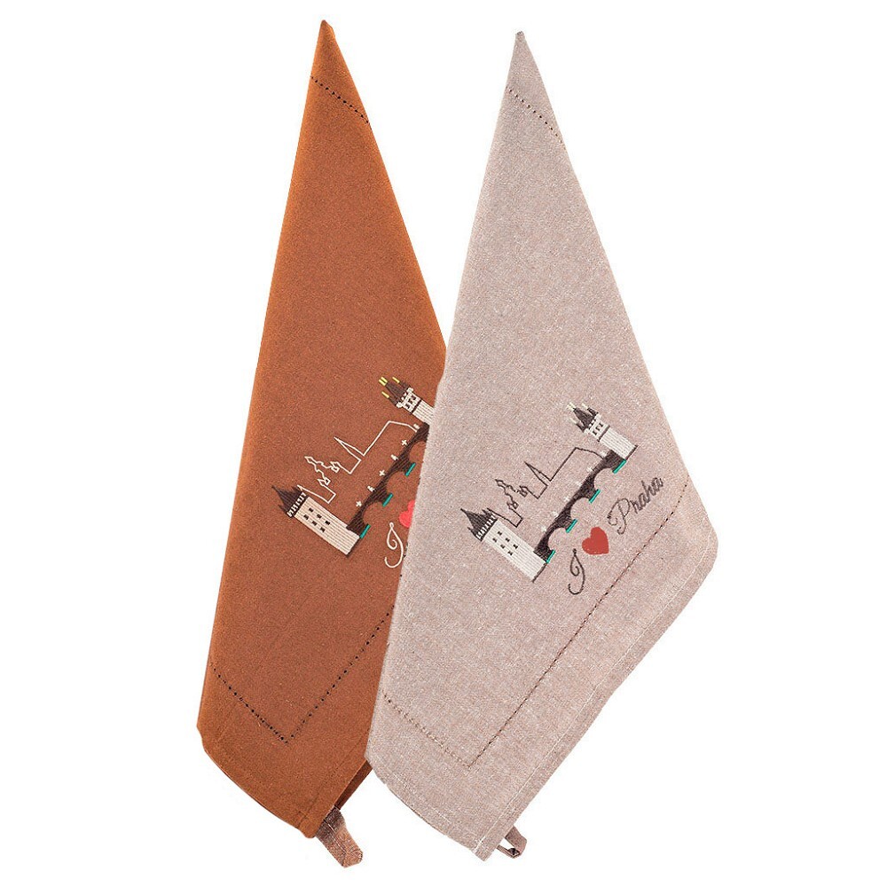 GIFTY CITY Utěrka 2 ks,50 x 70 cm,Béžová a hnědá,výšivka Karlův most,RC BA