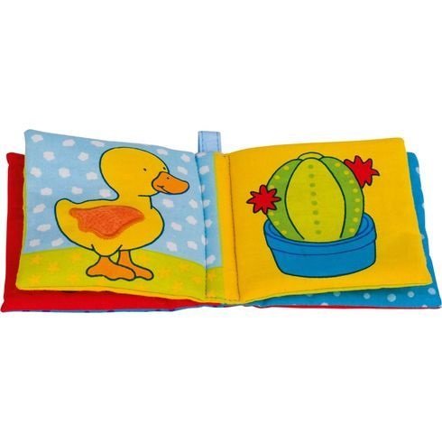 Okrem krásnych obrázkov obsahuje knižka aj časti šité z rôznych materiálov, čo pomáha deťom rozvíjať hmat a spoznávanie sveta okolo nich prostredníctvom dotyku. Veľkosť 9 cm x 9 cm je ideálna pre malé detské ručičky a výroba z bavlny zabezpečuje príjemný a bezpečný materiál pre najmenších.