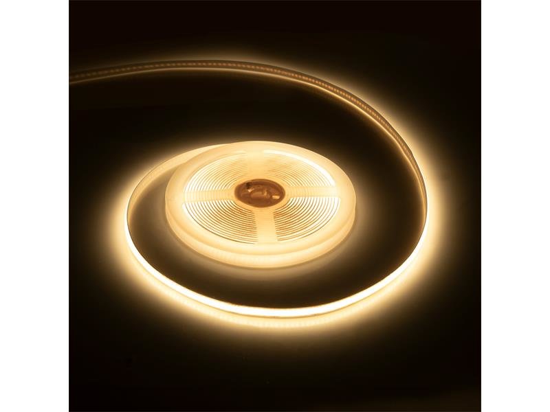 LED pásek Technické parametry:Počet a typ diod: 320 LED COBVodotěsné (Stupeň krytí: IP65)Napětí: 12 VÚhel vyzařování: 120°Světelný tok: Max 1040 lm/mJmenovitý výkon: 11 W/mBarva světla: Teplá bílá (3000 K)Provoz teplota : -20°C - 40°CEnergetická třída: FDélka: 5 mRozměry: 5000 x 8 x 2...
