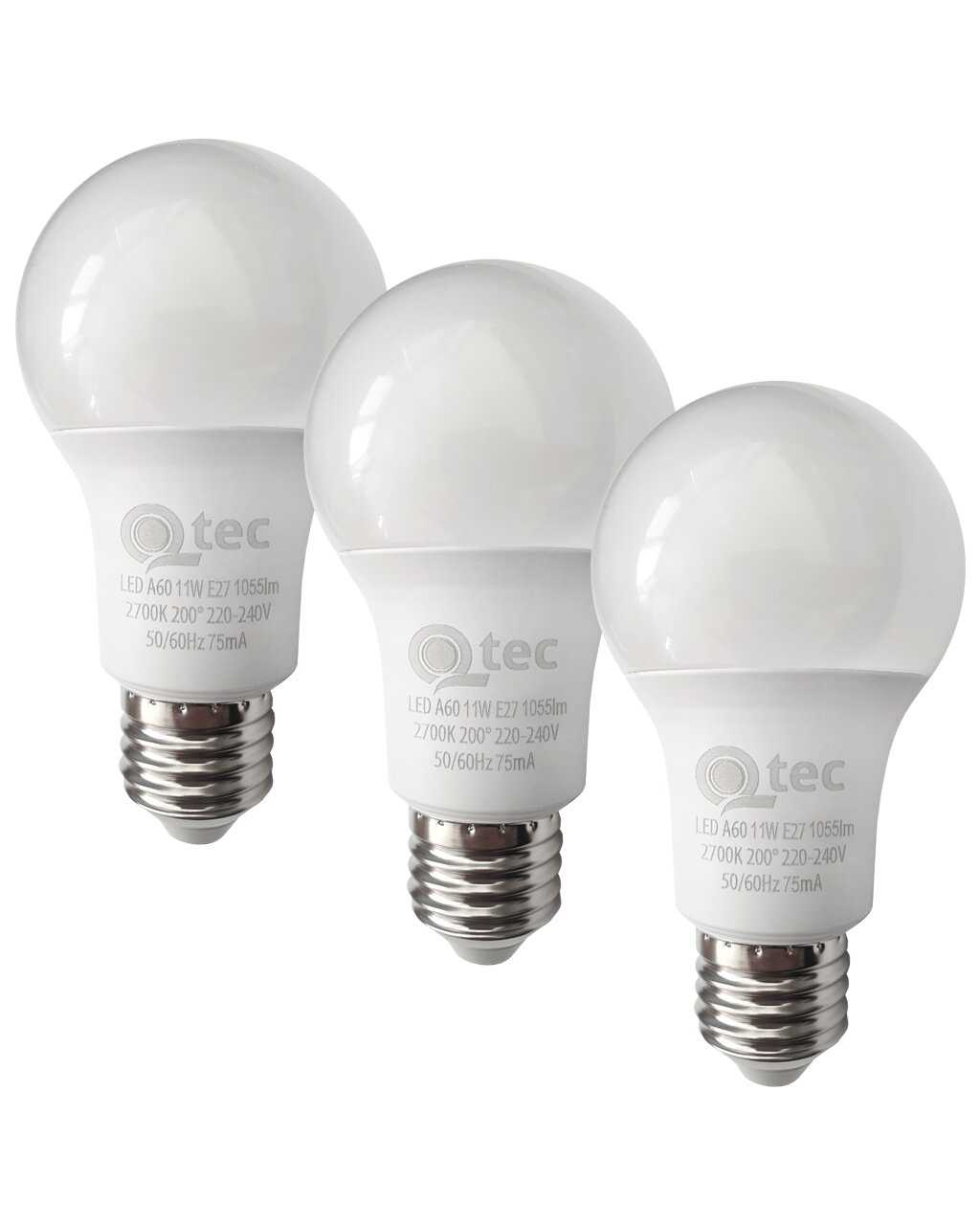 LED žárovky 11W/1055lm/A60/E27 teplá bílá 3 PACK Qtec