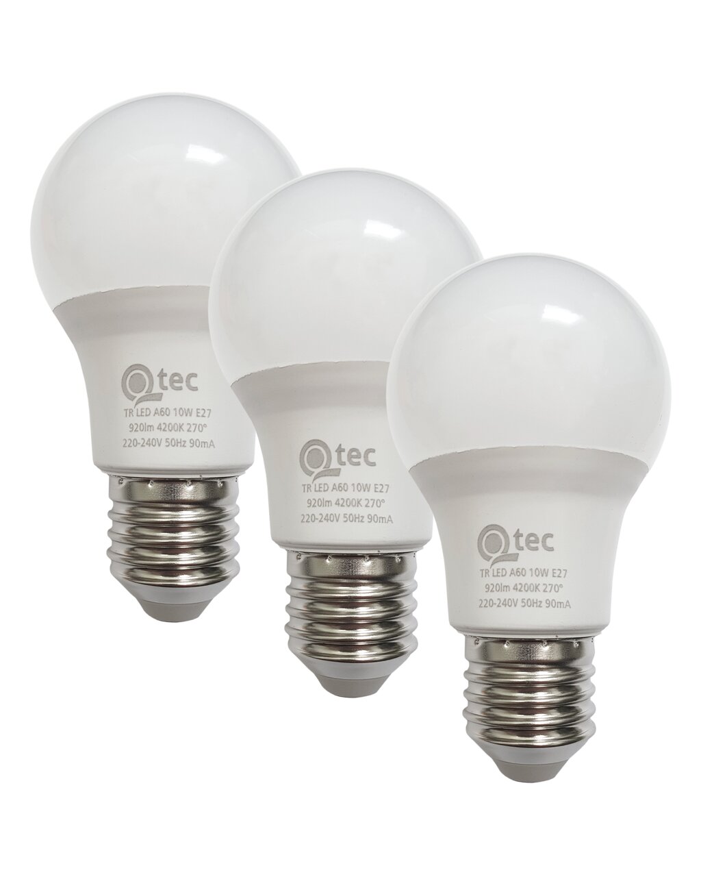 LED žárovky 10W/920lm/A60/E27 neutrální bílá 3 PACK Qtec