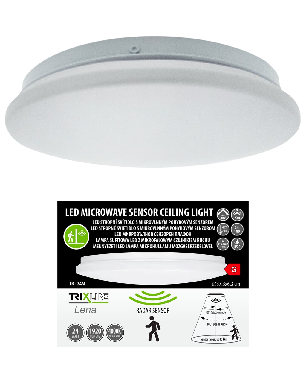 TR-24M LED stropní 24W/1920lm/4000K senzorové, kulaté světlo - bílé Trixline LENA