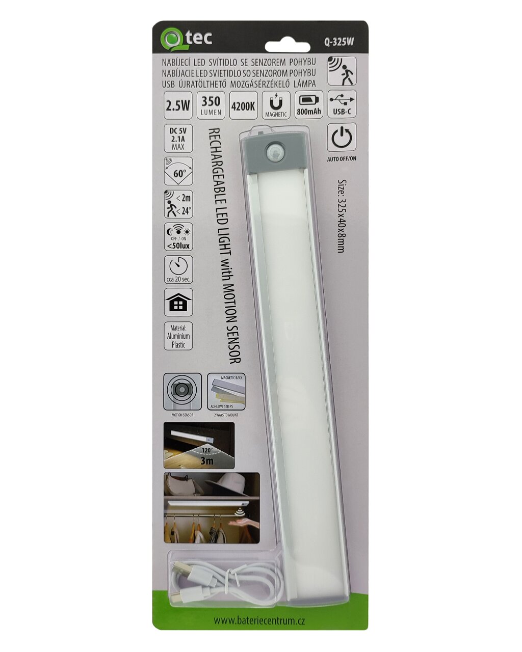 Q-325W USB Nabíjecí LED osvětlení 2,5W 4200K se senzorem pohybu QTEC