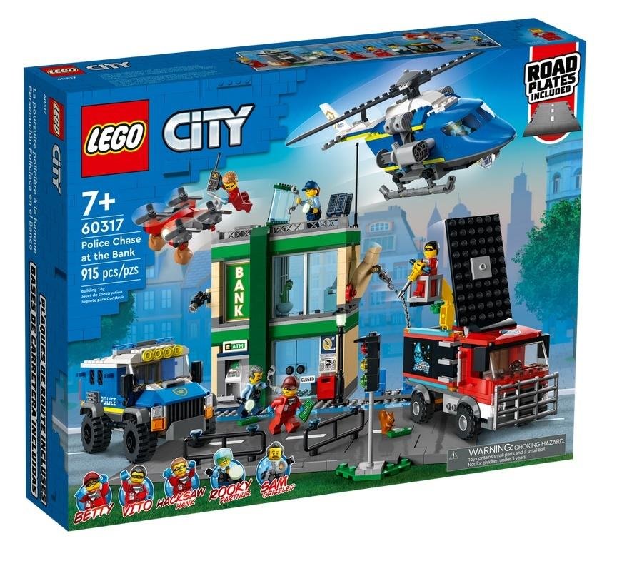 Stavebnice Policejní honička v bance (60317) od LEGO® City přináší neomezené možnosti akčního hraní. Součástí je budova banky nabitá funkcemi, úklidový vůz, který lze rozložit na loupežné vozidlo zlodějů, dále policejní vrtulník, policejní dodávka a 6 minifigurek, včetně 5 populárních postav z...