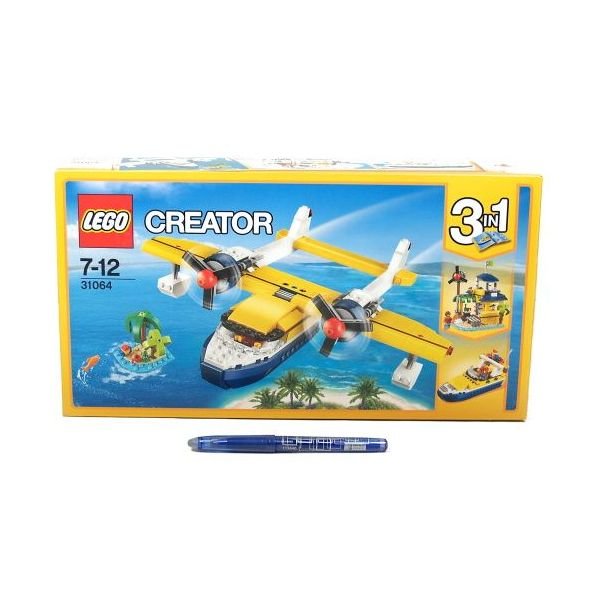 Najdi mapu v lahvi a vydej se na vzdálený tropický ostrov v úžasném letadle se dvěma vrtulemi a plováky. Dej náklad do nákladového prostoru, otevři kokpit a nastup, potom roztoč obrovské vrtule a vzleť do oblak. Využij své pilotní dovednosti k nalezení ostrova, uprav výškové klapky a přistaň bez problémů na moři! Lze přestavit na Chatrč na ostrově nebo na Rychlý motorový člun. Rozměry balení 35 x 19 x 7 cm. Věk: 7-12