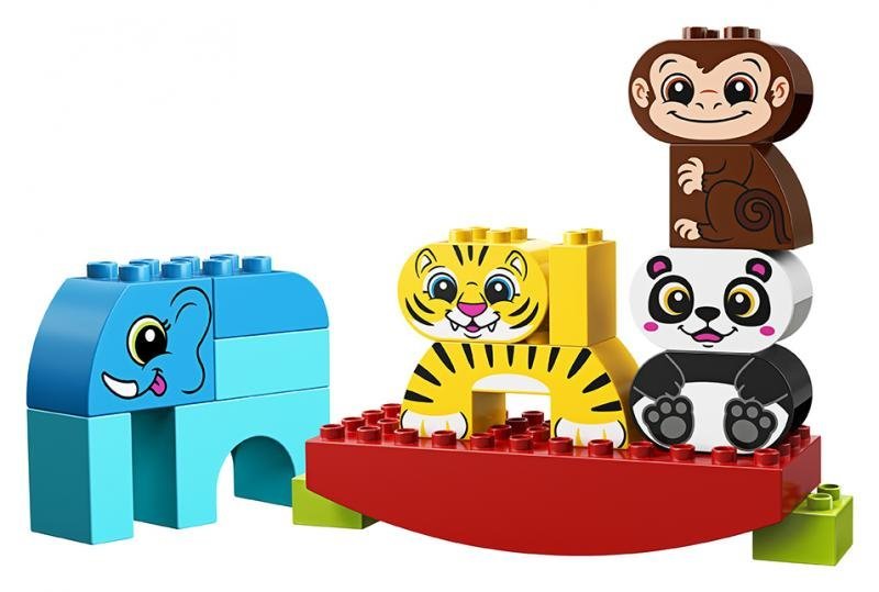 Ti nejmenší si užijí spoustu zábavy při stavění a hraní se zvířátky ze sady LEGO® DUPLO® 10884 Moje první balancující zvířátka! Stavějte pestrobarevná zvířátka z džungle na sebe na houpačce až se vám podaří ji převrátit. Mezi snadno sestavitelnými figurkami najdete opici, slona, tygra a pandu....