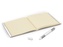 Zápisník má rozměry 160 x 160 mm, 176 linkovaných listů, slonovinový papír.