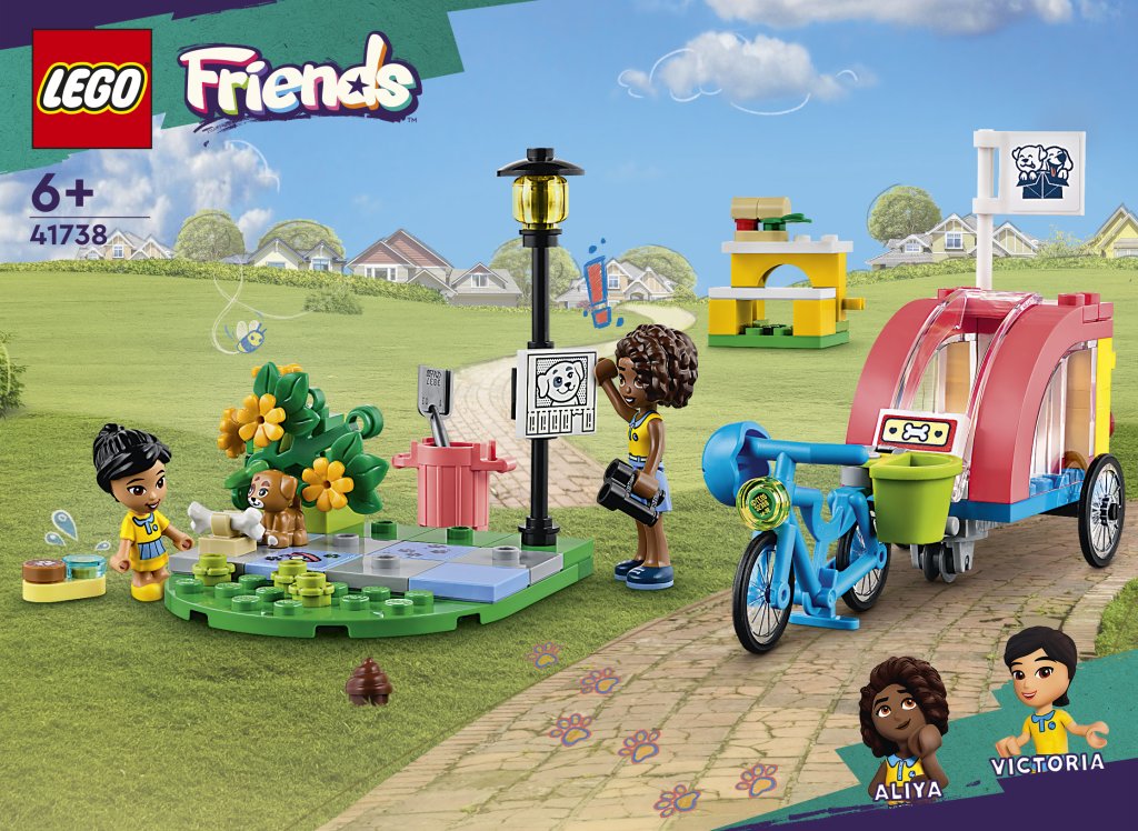 LEGO® Friends 41738 Záchrana psíka na bicykli ponúka zábavný a interaktívny svet, v ktorom môžu deti od 6 rokov rozvíjať svoju predstavivosť. Hra začína pátraním po stratenej šteniatku v mestečku Heartlake a pokračuje starostlivosťou o neho po jeho nájdení. Súčasťou je originálny bicykel s odpojiteľným vozíkom, do ktorého si šteniatko môže schovať, rovnako ako park s lavičkou a kríkmi, kde sa psík môže skryť. Vďaka minifigúrkam Aliye a Victorie a doplnkom ako jedlo, voda, ďalekohľad či prilba bude každá herná situácia ešte živšia a realistickejšia.