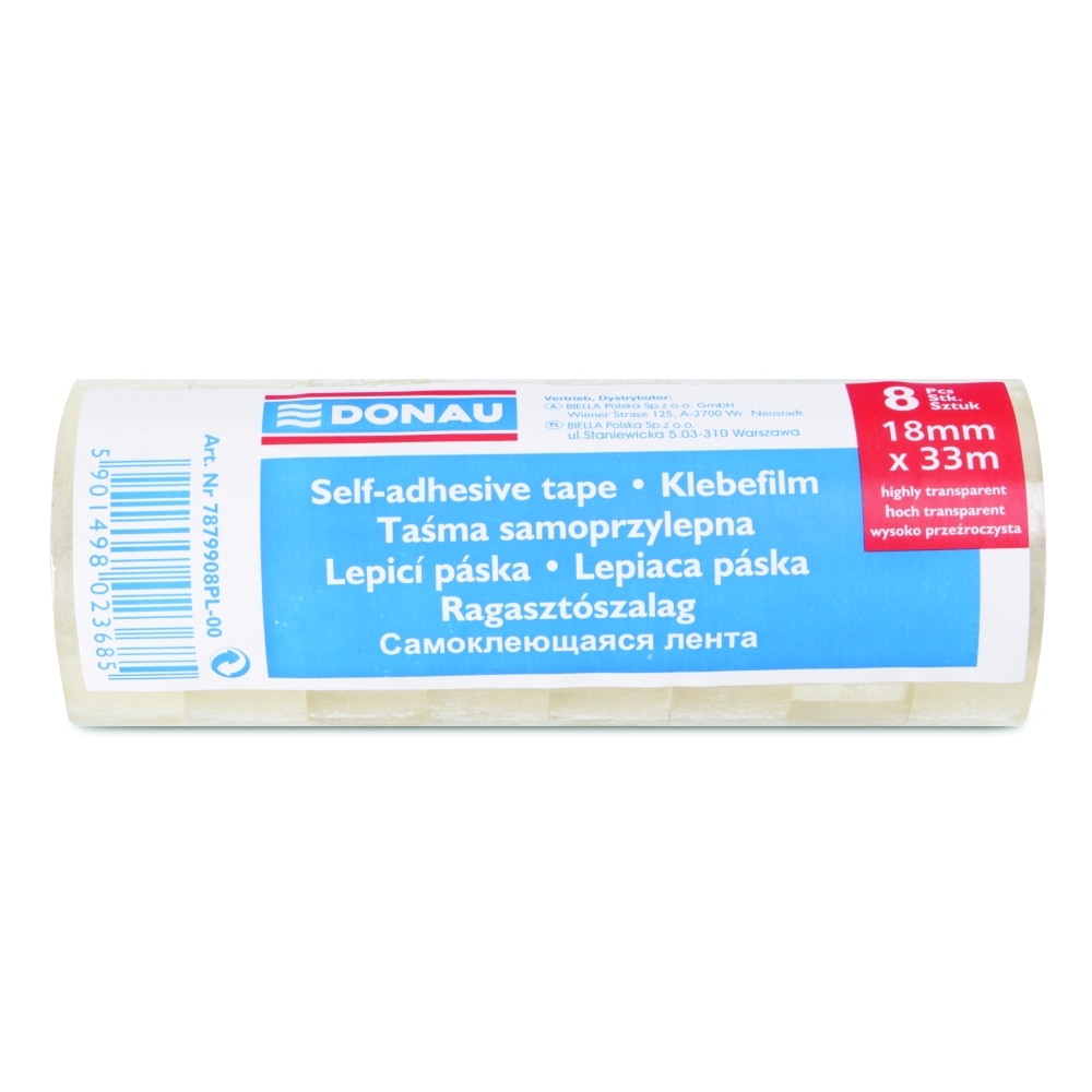 DONAU kancelářská páska, 18 mm x 33 m, 8 ks, transparentní