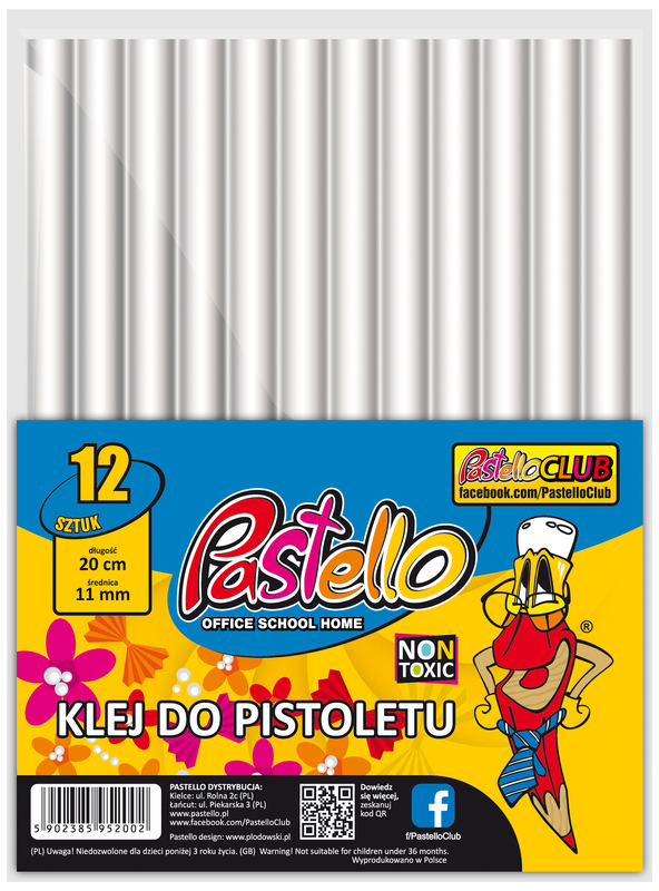 Klej termotopliwy sztyft 11mm x 20cm, 12szt,Pastello