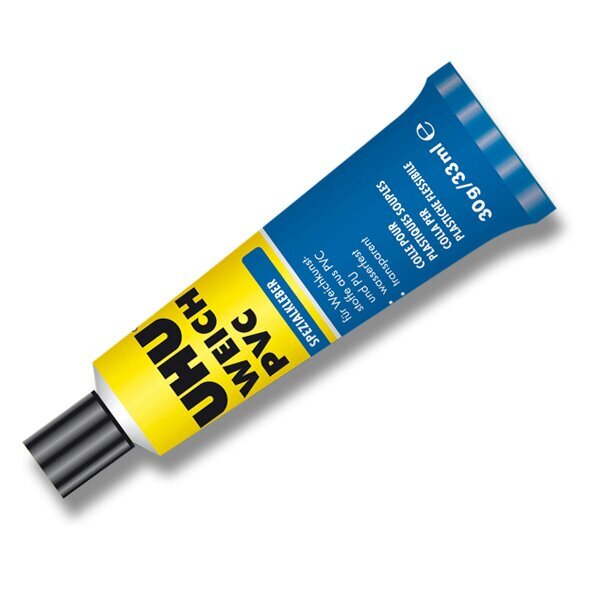 Velmi pevné speciální transparentní lepidlo UHU Weich PVC pro opravy a lepení měkčených plastů. Vysoká odolnost vůči vodě a teplotám od -30 do +70 °C, odolnost vůči olejům, ředěným kyselinám a louhům. Lepený spoj zůstává elastický a vyrovnává vnitřní napětí.Lepí měkčené PVC, gumu a umělou kůži....