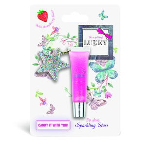 Třpytivý lesk na rty Lukky (7 ml) s přívěškem, s ovocnou příchutí. Vhodné pro děti od 3 let. prečítať celé