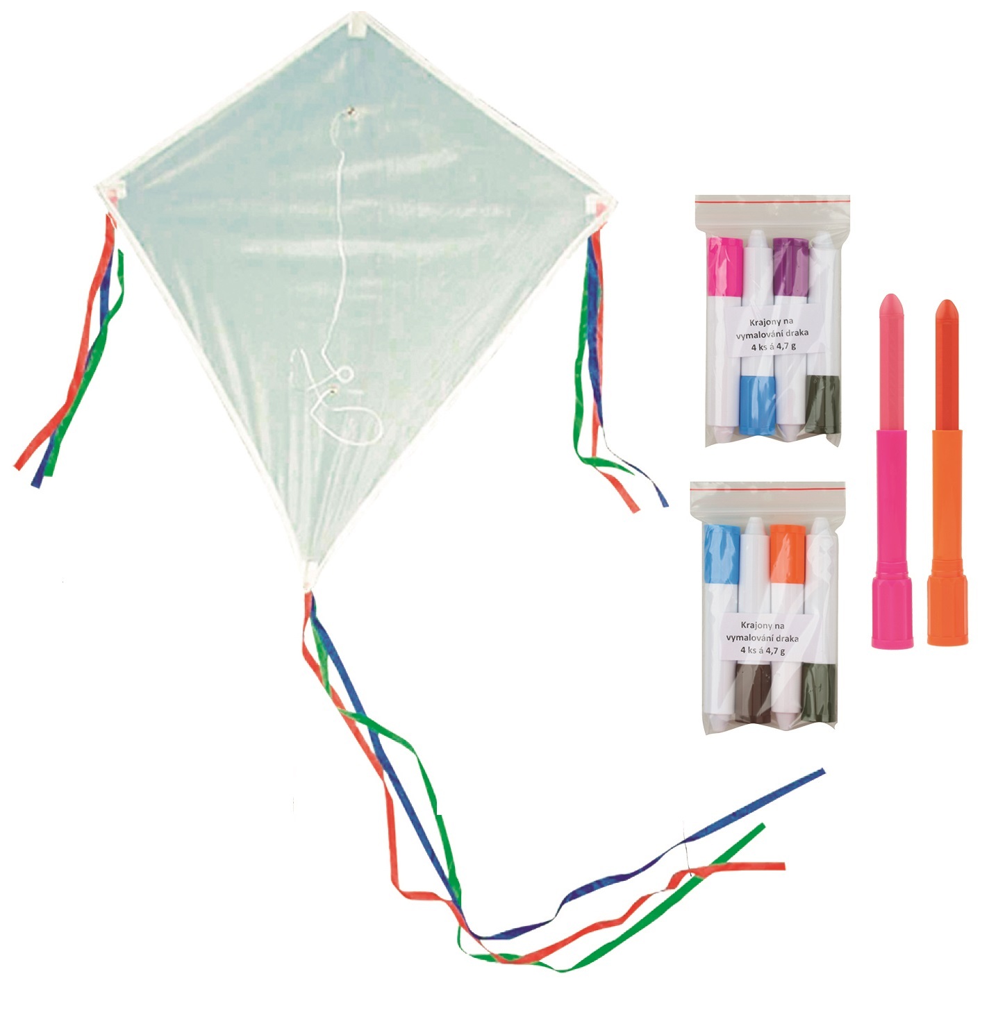 Bílý drak k dotvoření s barevnými pastelyVytvořte si svého originálního draka!Součástí balení je šňůra dlouhá 30 metrů a 4 kusy pastelů (4,7 g).K ozdobení můžete také použít barevné decorpeny, akrylové barvičky nebo třeba glitrová lepidla. prečítať celé