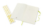 Zápisník má měkkou, ve hřbetu šitou vazbu. Obepíná ho pružná páska proti samovolnému otevírání. Každý zápisník je vybaven pořadačem poznámek, který je vyroben z tkaniny a kartonu, textilní záložkou a letákem s historií Moleskine. Papír s gramáží 70 g/m2 neobsahuje kyseliny.