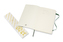 Zápisník má měkkou, ve hřbetu šitou vazbu. Obepíná ho pružná páska proti samovolnému otevírání. Každý zápisník je vybaven pořadačem poznámek, který je vyroben z tkaniny a kartonu, textilní záložkou a letákem s historií Moleskine. Papír s gramáží 70 g/m2 neobsahuje kyseliny.