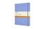Světle modrý linkovaný XL zápisník v tvrdé vazbě. Obepíná ho pružná páska proti samovolnému otevírání. Každý zápisník je vybaven pořadačem poznámek, který je vyroben z tkaniny a kartonu, textilní záložkou a letákem s historií Moleskine. Papír s gramáží 70 g/m2 neobsahuje kyseliny.
